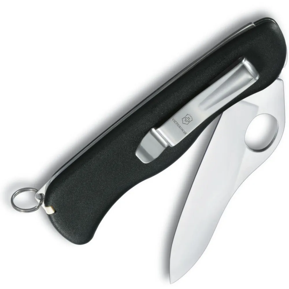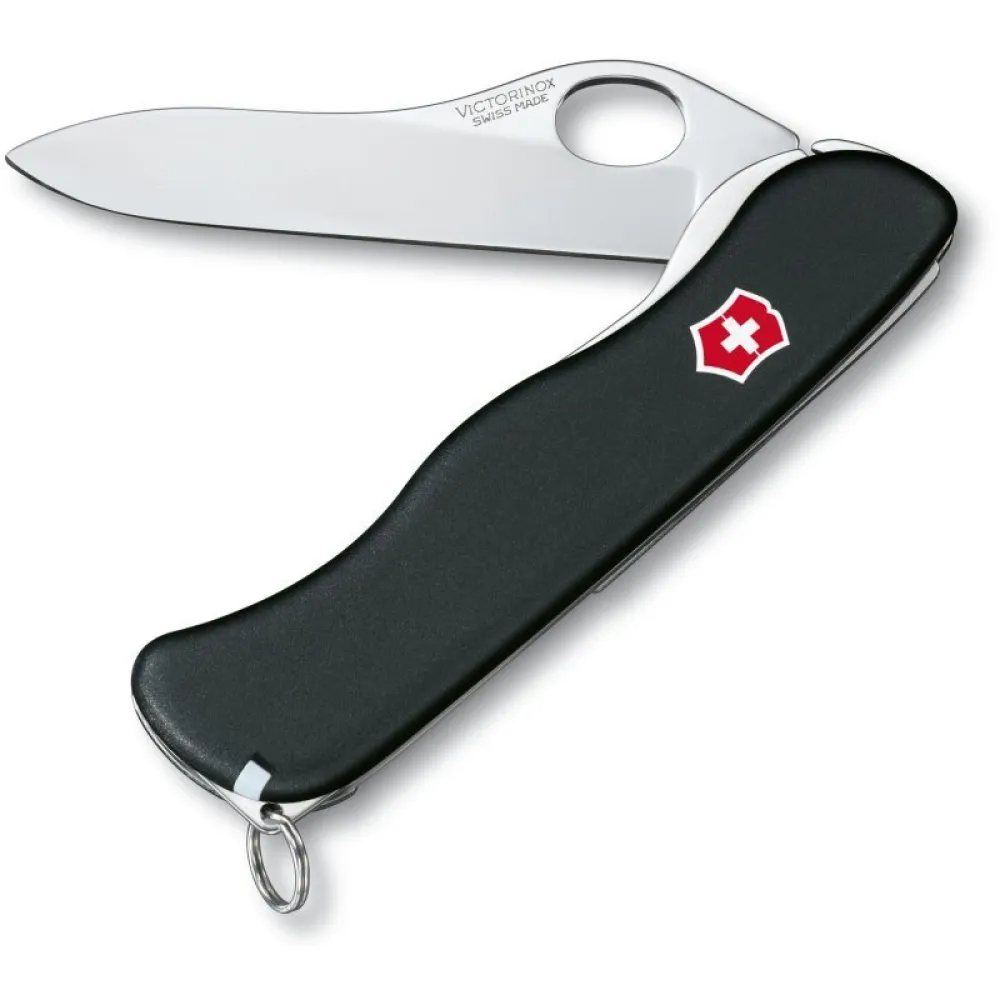 Descripción del cuchillo suizo Victorinox Sentinel One Hand ClipEl cuchillo suizo Victorinox Sentinel One Hand sorprende por su peso (78 gramos), su ergonomía (perfil de mango de doble onda), su solidez (robusto cuerpo de nailon y hoja de acero inoxidable) y su rapidez de uso (apertura de la hoja con una sola mano, en un solo movimiento).