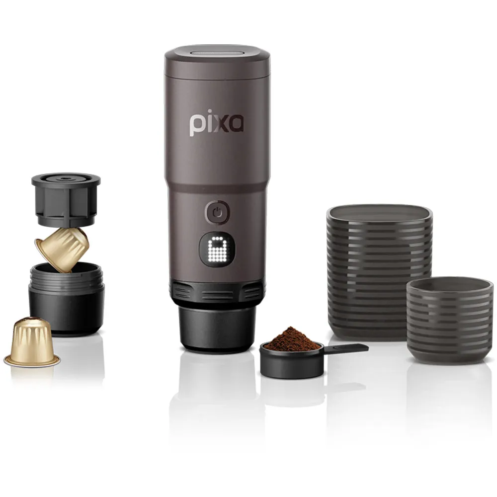 Pixpresso es la primera máquina de espresso portátil, eléctrica y compacta de Wacaco, diseñada para los entusiastas del espresso que se niegan a comprometer la comodidad, sin importar dónde se encuentren. Con su pantalla elegante e intuitiva, la Pixpresso te permite controlar sin esfuerzo los ajustes clave de preparación, como la temperatura del agua caliente y la preinfusión, poniendo el poder de la personalización a nivel de barista al alcance de tu mano. Ya sea que estés preparando con café molido fresco utilizando la cesta ajustable o disfrutando de la comodidad de las cápsulas de café, Pixpresso adapta cada taza a tus preferencias exactas. Perfecta para el hogar, la oficina o las aventuras al aire libre, ofrece una experiencia de espresso excepcional en cualquier momento y en cualquier lugar, atendiendo tanto a los bebedores ocasionales como a los conocedores de café más exigentes.