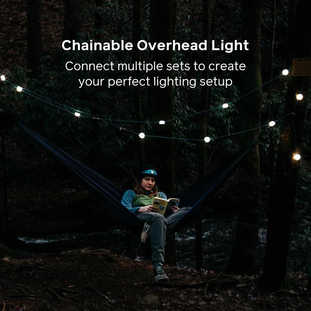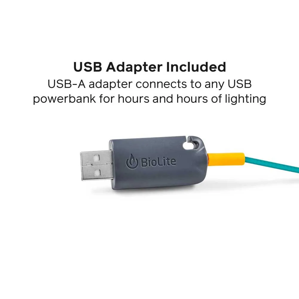 Tuo tähtitaivas lähemmäksi tällä valojen ryhmällä, joka on suunniteltu helppokäyttöiseksi ja nopeasti pystytettäväksi. SiteLight String -valonauha sisältää neljä valoa, ja sillä voi valaista polkuja, leirialueita ja telttoja 150 lumenin ympäristövalolla. 10 jalan johdolla varustettu nauha voidaan kytkeä ketjuun, ja se toimii BioLite-lyhtyjen tai mukana toimitetun adapterin avulla minkä tahansa USB-virtalähteen kanssa.