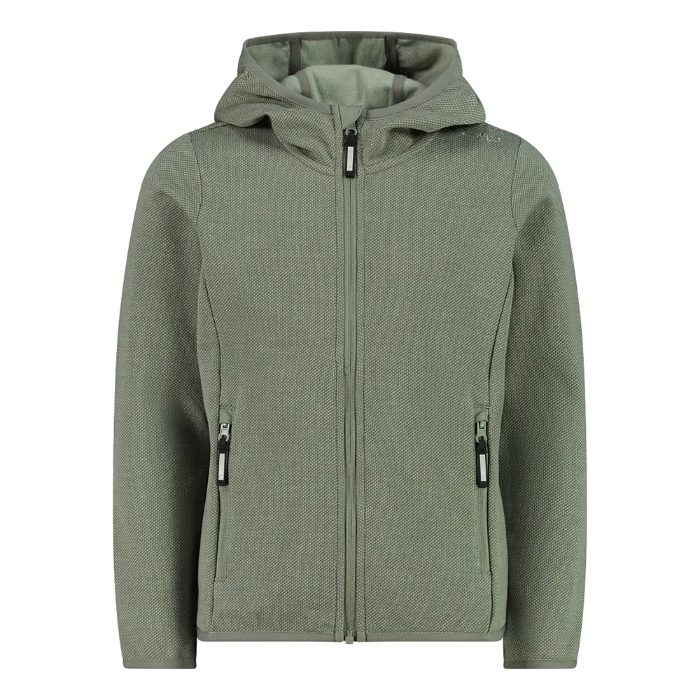 Teknisen näköinen hupullinen meleerattu fleecetakki, suunniteltu nuorille ulkoilijoille.