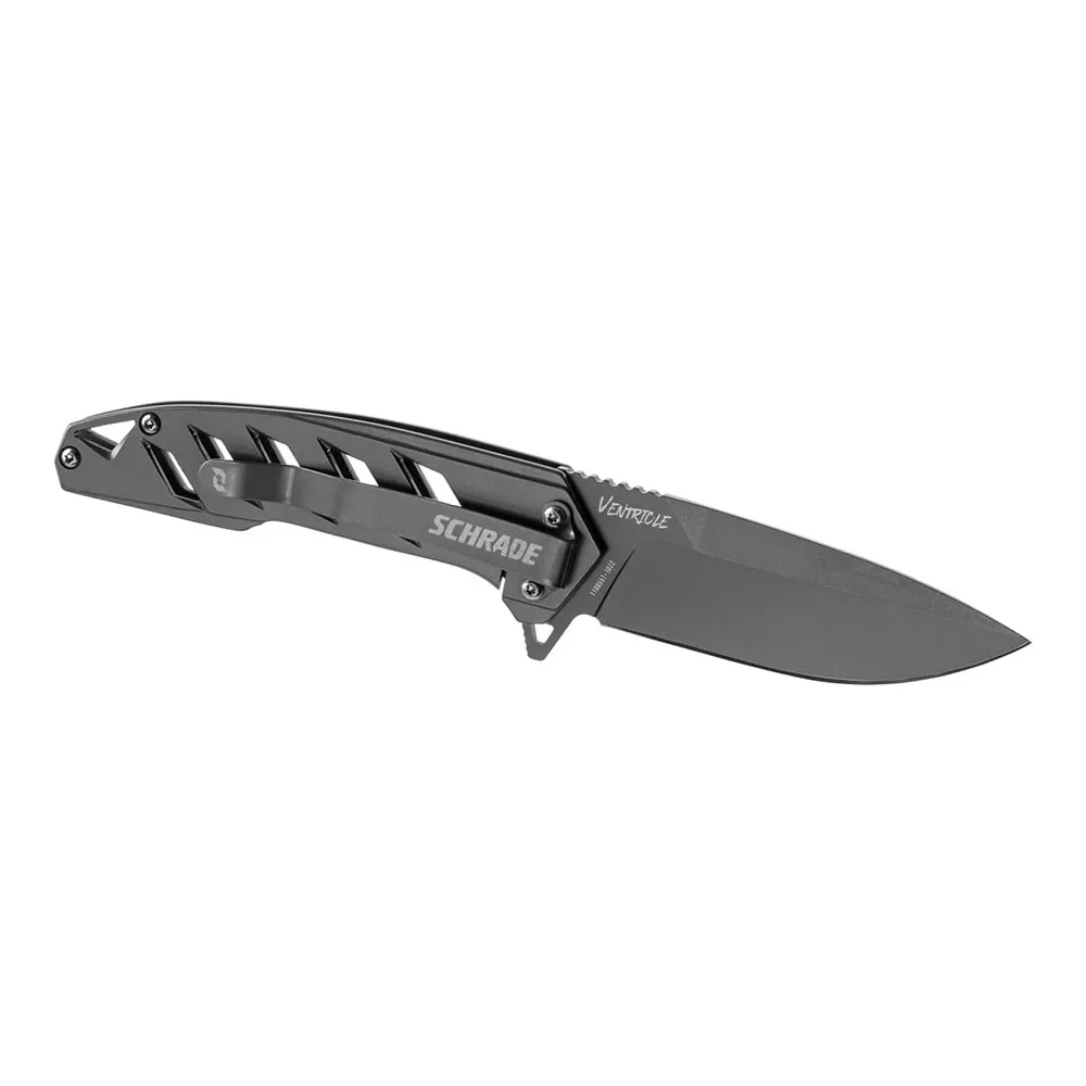 Schrade Ventricle -taskuveitsi on suunniteltu helppoon kantamiseen, ja siinä on . Tämän ansiosta voit kantaa veistä turvallisesti taskussasi tai vyölläsi, joten se on aina helposti saatavilla. Veitsen kompakti ja kevyt muotoilu tekee siitä ihanteellisen reppureissuille, vaellukselle, leirintään ja muihin ulkoiluaktiviteetteihin.