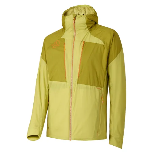 Monikäyttöinen, kestävä ja eristävä, lämmin, tuulenpitävä ja erittäin kevyt tekninen miesten takki, joka on valmistettu kokonaan kierrätetyistä kankaista.