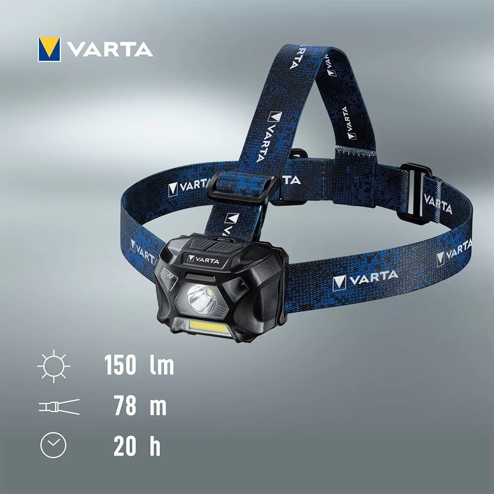 Taskulamppu toimii flex -liiketunnistimella H20 Varta. liiketunnistintoiminto, joka siirtää kätesi valon eteen. cob led ja 3 w led tekniikka. 8 valotasoa - 2 metrin pudotuskestävyys. suoja vesiroiskeita ja pölyä vastaan (ip54). säädettävä ja pestävä pääpanta. pyörivä pää ihanteelliseen ympäristön valaistukseen. pituus 37 mm. valon kantama: jopa 78 m. kesto: jopa 20 h. kokonaisvaloteho: jopa 150 lumenia valonlähde: 3 watin led.