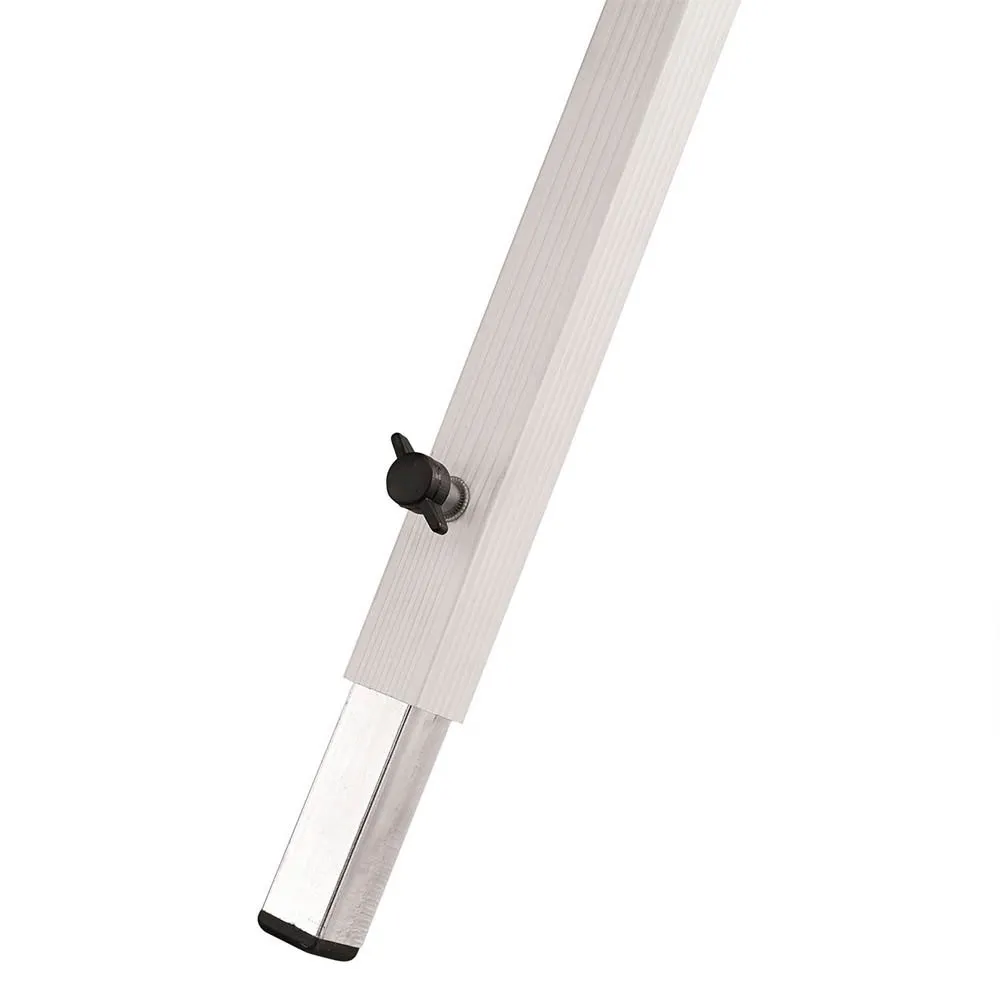 Table qui semble solide, peu d'espace pliée, je veux qu'elle campe dehors. Montage facile et pied avec régulateur de hauteur pour le stabiliser
