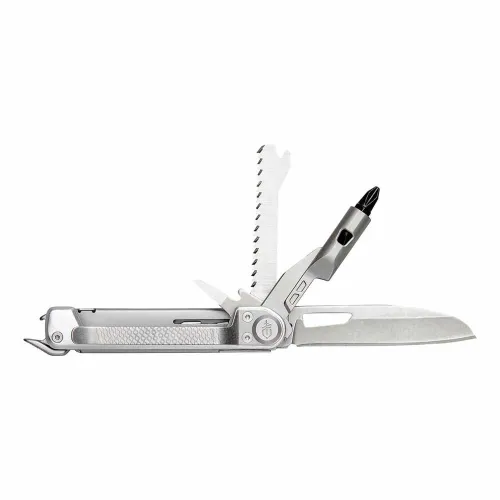 Il comprend 8 outils essentiels, dont une lame à bord lisse, des ciseaux à ressort, un tournevis à double face, un levier, un marteau, un décapsuleur, un poinçon et un ouvre-boîte/emballage.