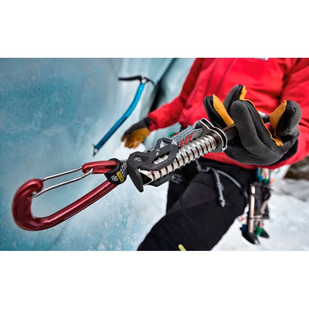 Cette broche à glace innovante est dotée d´une dégaine intégrée, la rendant légère et économisant de l´espace sur le porte-matériel. Son astucieux capuchon de protection protège le matériel de la pointe acérée. Les utilisateurs louent sa manipulation rapide et aisée d´une seule main, grâce à une tête ergonomique et un levier de vissage rapide. Cette broche robuste et fiable est idéale pour réaliser des ancrages sur glace, offrant une conception pratique et sûre. Sa construction et ses matériaux de qualité inspirent confiance à tout grimpeur sur glace