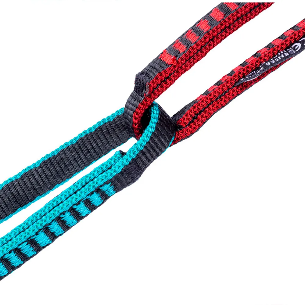 Cordino personale a distanza variabile, con una lunghezza di 60 cm, composto da una catena di anelli di fettuccia cuciti. Realizzato in poliammide e HMPE (polietilene ad altissimo peso molecolare). Il componente HMPE conferisce eccezionale leggerezza e resistenza all´intero pezzo.