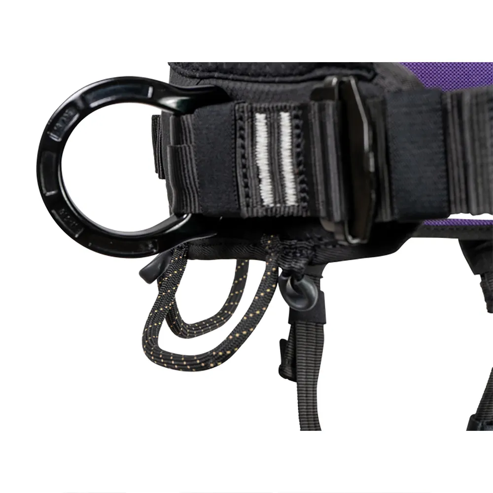 Vestibilità Perfettamente Centrata: Le doppie fibbie autobloccanti sulla cintura garantiscono che l´anello di assicurazione e i portamateriali siano sempre centrati per un equilibrio e una sicurezza ottimali.