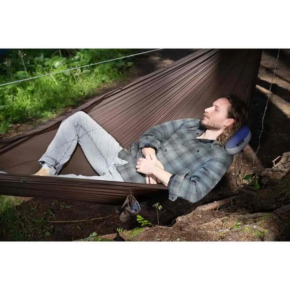 Cuscino gonfiabile ultraleggero per un comfort extra durante i tuoi viaggi e nella tua amaca. Proprio come tutti i cuscini COCOON Air-Core, il cuscino per amaca/viaggio è dotato di un nucleo d´aria gonfiabile e intercambiabile sotto uno strato di imbottitura sintetica di alta qualità. La cerniera nel guscio in morbida microfibra di poliestere consente di estrarre il nucleo d´aria per il lavaggio o la riparazione. Una valvola di ritegno a basso profilo consente un gonfiaggio e uno sgonfiaggio senza sforzo. L´amaca perfetta e/o il cuscino da viaggio con dimensioni di imballaggio minime.