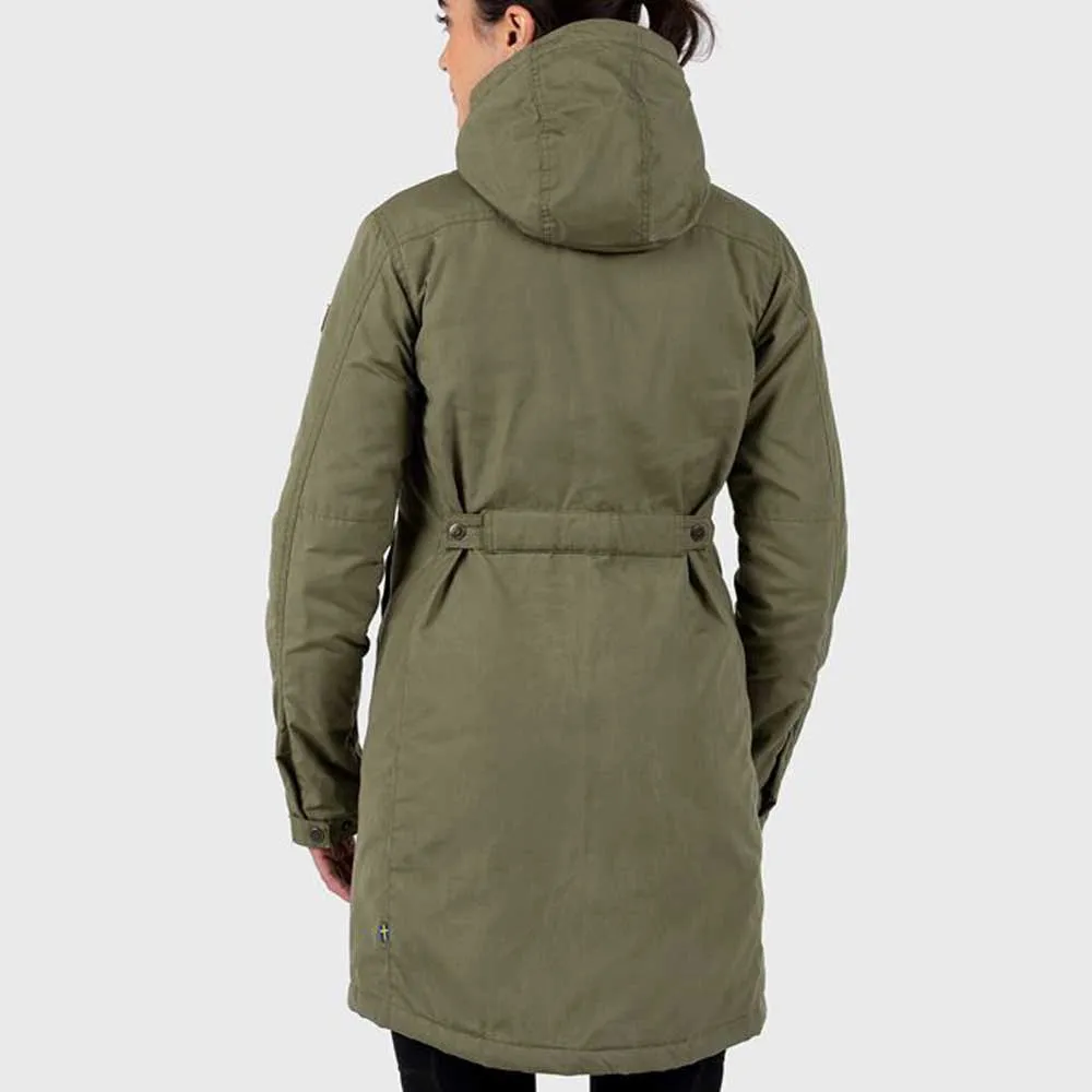 Affronta i mesi più freddi con il parka Fjällräven Kiruna. Questo parka lungo e leggermente imbottito è il tuo compagno perfetto per tutti i giorni, abbastanza resistente per le passeggiate nel bosco. Il suo robusto guscio in G-1000 Original resiste a vento e pioggia, mentre l´imbottitura sintetica G-Loft Supreme fornisce un calore affidabile, anche quando è umida. Una cerniera a doppio cursore, un cappuccio regolabile e molteplici tasche con cerniera assicurano la funzionalità, mentre il taglio lungo offre una protezione extra. Per la massima resistenza alle intemperie, migliorala con la cera Greenland