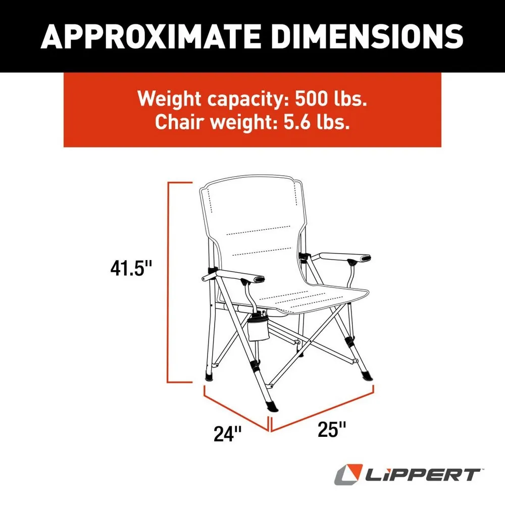 Aggiorna il comfort del tuo campeggio con la sedia Lippert Scout. Questa sedia da campeggio robusta e versatile è perfetta per rilassarsi attorno al falò, godersi un panorama suggestivo o semplicemente riposarsi dopo una giornata di avventure all´aperto. Costruita con un robusto telaio in acciaio e un tessuto in poliestere 600D resistente, la sedia Scout offre un supporto eccezionale e prestazioni durature, stagione dopo stagione. Sperimenta il massimo del relax portatile con la sua facile installazione e le dimensioni compatte una volta ripiegata.