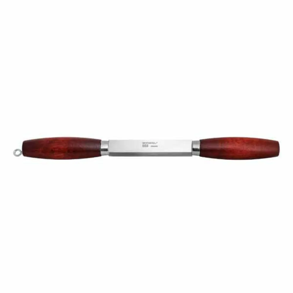 Questo coltello artigianale classico autentico fa parte della tradizione artigianale svedese da oltre un secolo. I due manici in betulla rossa a forma di botte con una lama spessa 2,5 mm in acciaio inossidabile svedese riciclato ti aiuteranno a spaccare la legna.