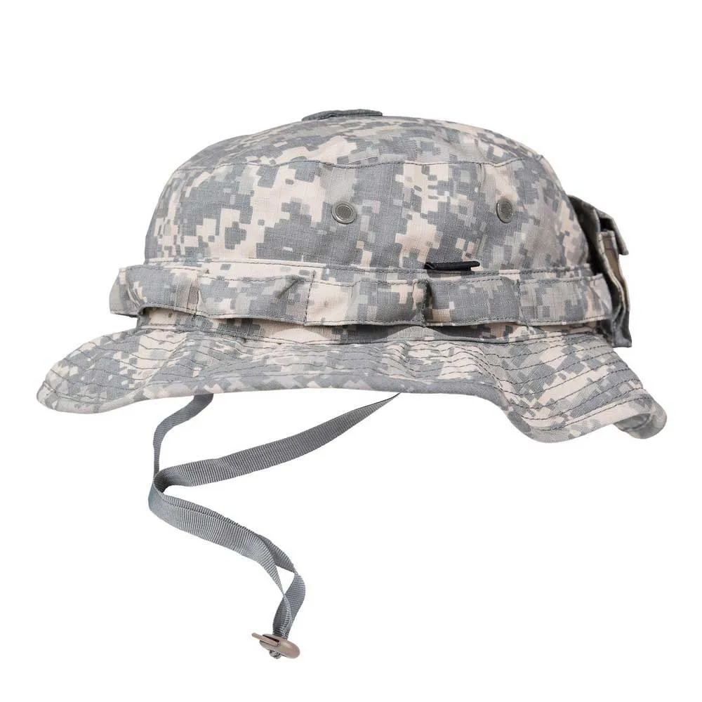 Conosciuto anche come il cappello Boonie è diventato ancora migliore, con il ramo classico che tiene i Loop intorno alla corona del cappello, anelli O per la ventilazione con indicatore repellente per insetti, una toppa in velcro sulla parte superiore per le tue toppe IR e una tasca posteriore rimovibile per piccole utilità.