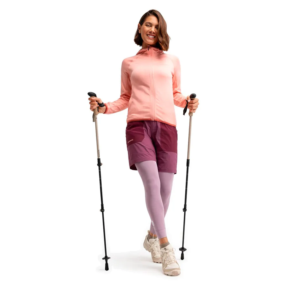 Giacca in pile leggera da trekking da donna con cappuccio.