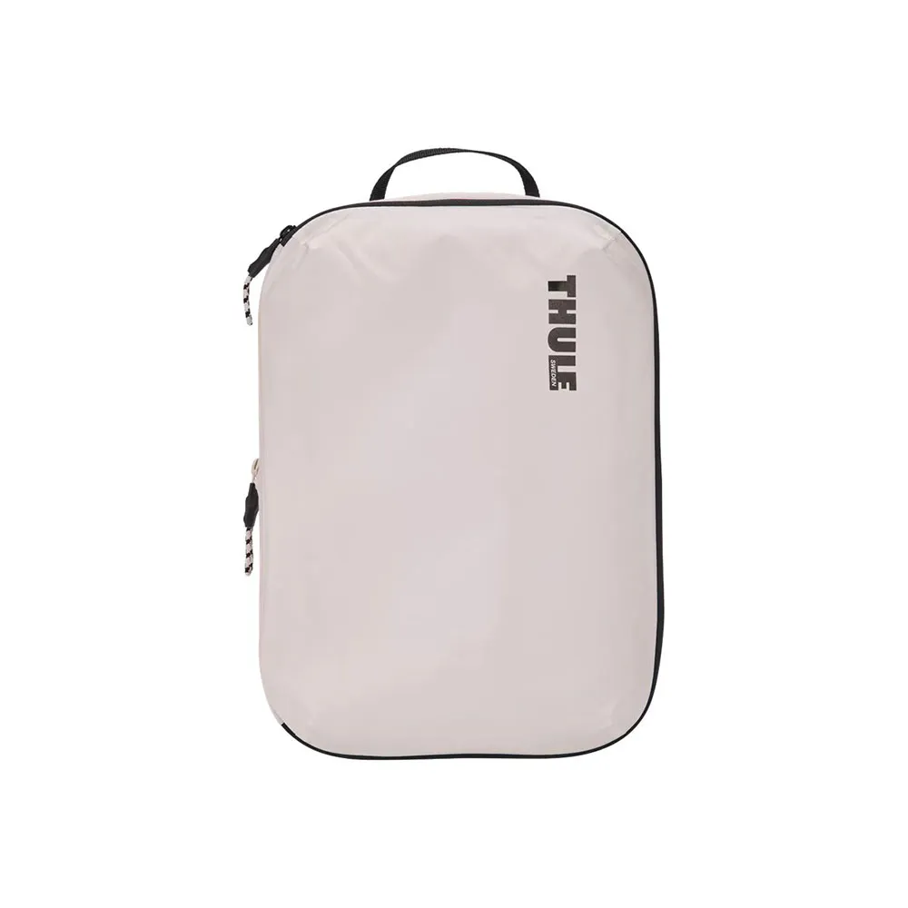 Il THULE Compression Medium Packing Cube in bianco è il compagno di viaggio perfetto per i viaggiatori organizzati che apprezzano sia la funzionalità che lo stile.