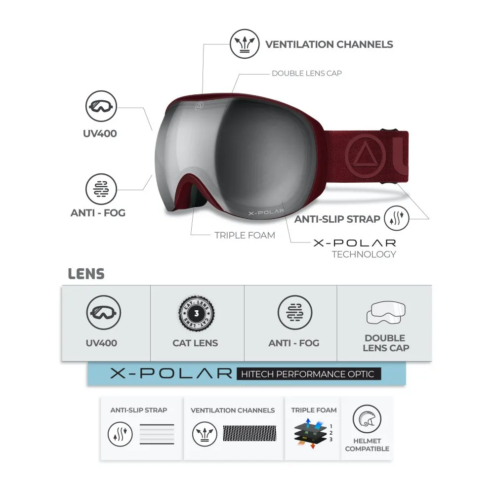 Conquista la montagna con assoluta sicurezza e una visione cristallina grazie alla maschera da sci ULLER Blizzard. Progettata per sciatori e snowboarder appassionati che esigono il massimo livello di prestazioni, il modello Blizzard è il tuo partner essenziale per le giornate luminose e soleggiate sulle piste. Sperimenta un campo visivo senza pari e una protezione superiore, permettendoti di concentrarti esclusivamente sulla tua linea, sia che tu stia scolpendo le piste battute, esplorando la neve fresca in backcountry o affrontando il park.