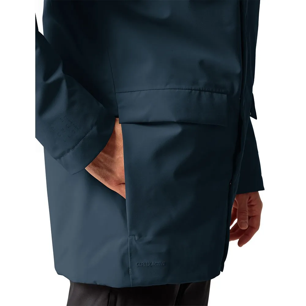 Sfida il clima invernale con il parka VAUDE Coreway. Questa giacca termica urbana da uomo è completamente impermeabile, antivento e traspirante, e dotata di un´imbottitura PrimaLoft® Black super calda. Realizzata con materiali riciclati, è una scelta ecologica per il consumatore consapevole. Rimani organizzato grazie alle numerose tasche, tra cui una tasca interna sicura e tasche frontali a doppio accesso. Il cappuccio regolabile ha una calda fodera in lana, e la cerniera a doppio cursore aggiunge praticità per il ciclismo. È il compagno ideale, funzionale ed elegante per la stagione fredda