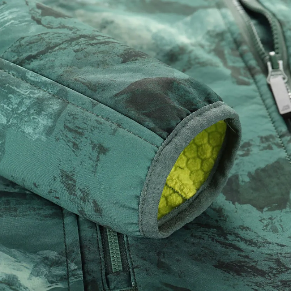 Het SOFT-SHELL WINDBARRIER-membraan voegt windbestendigheid toe, terwijl reflecterende tapes zorgen voor zichtbaarheid.
