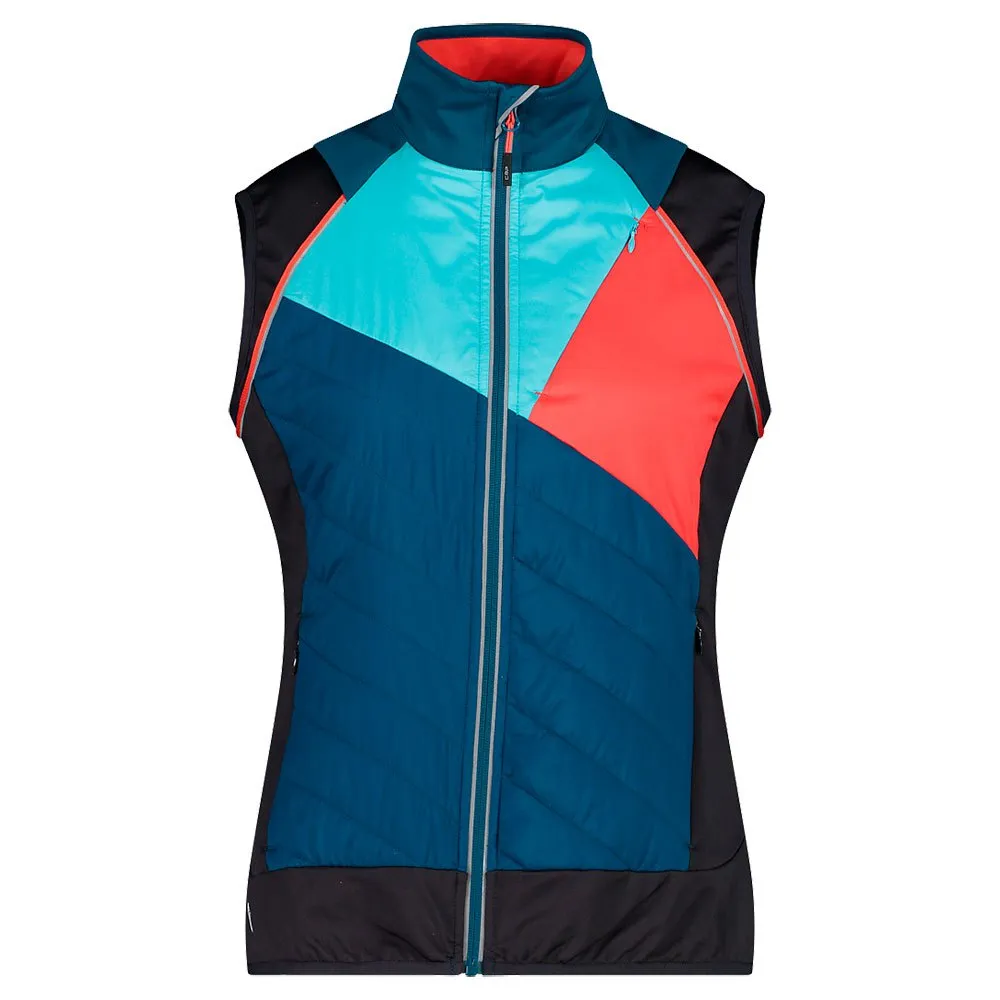 Outdoorjas voor dames met het centrale deel van het lichaam gewatteerd in Primaloft 40 g, terwijl de schouders en mouwen afneembaar zijn en in lichte softshell-stof:
