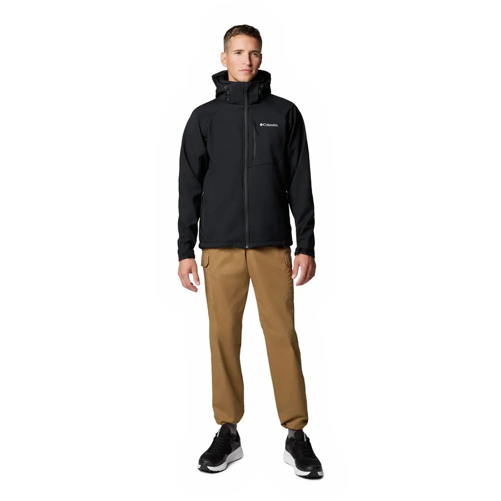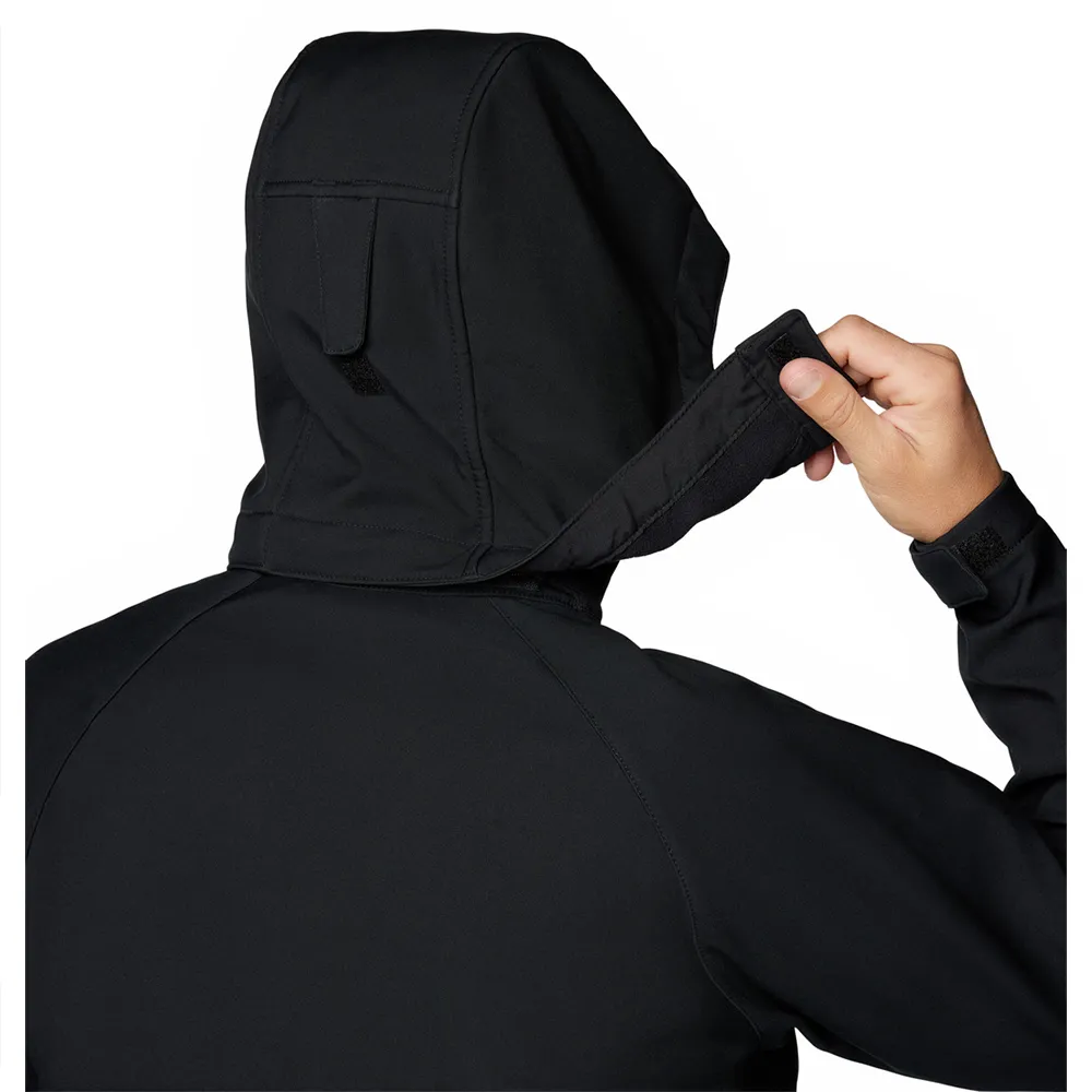 - Trotseer de paden in deze softshell-jas met waterafstotende afwerking, afneembare capuchon en verstelbare zoom en manchetten om de kou buiten te houden terwijl je onderweg bent.