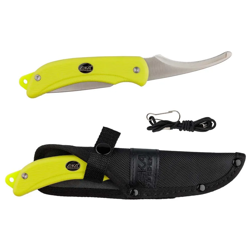 Ervaar een nieuw niveau van efficiëntie en vindingrijkheid in het veld met de EKA G3 Swingblade Mes. De G3 is een meesterwerk in Zweeds design en functionaliteit, en is niet zomaar een enkel gereedschap, maar een complete twee-in-één oplossing, ontworpen voor de serieuze jager, buitenmens en survivalenthousiast. Dit innovatieve stuk gereedschap herdefinieert wat u van uw meest essentiële uitrusting kunt verwachten, door twee cruciale lemmeten te combineren in één robuust en ergonomisch pakket. Zeg vaarwel tegen het meenemen van aparte mesjes voor het villen en opensnijden en omarm de naadloze overgang die alleen de G3 Swingblade kan bieden.