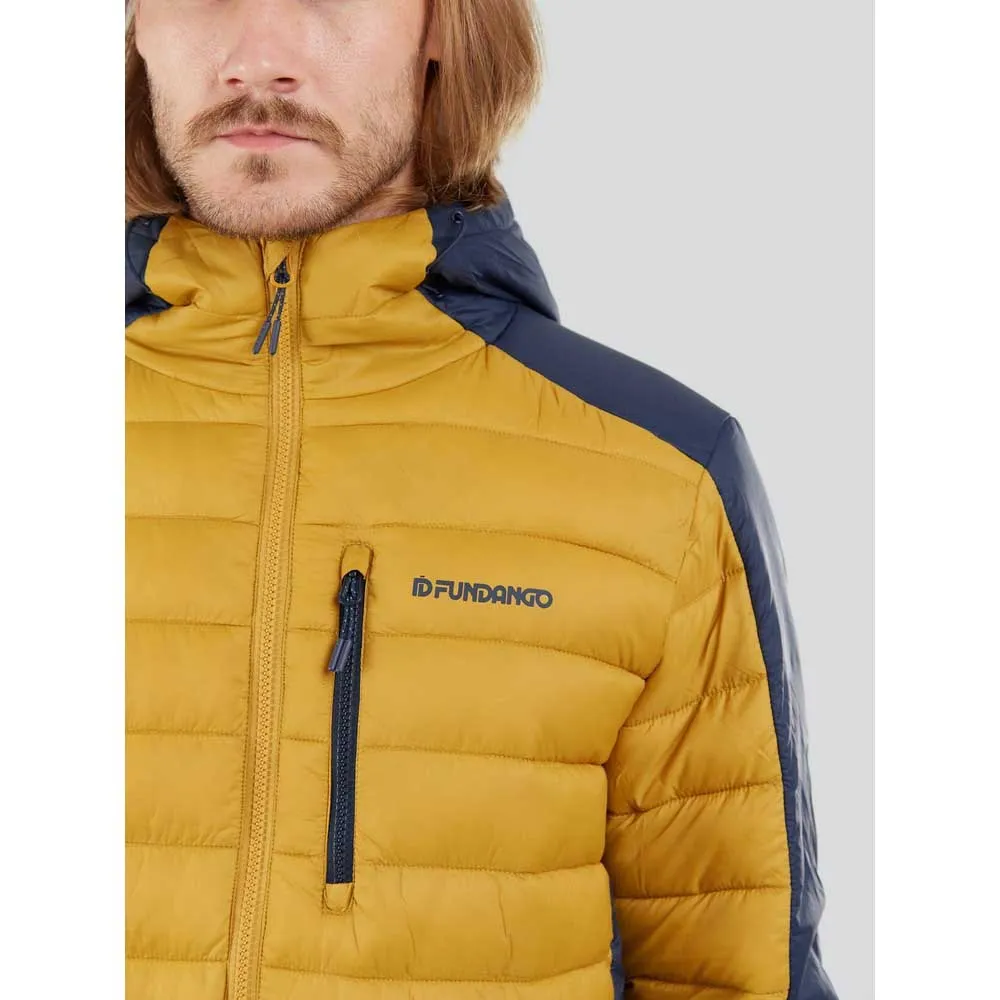 De gewatteerde Fundango Matt Hooded Jacket heren tussenjas met Regular Fit snit in korte lengte zorgt voor volledige bewegingsvrijheid en is geschikt om te dragen in laagjes. De met trekkoord verstelbare vaste capuchon en verstelbare onderzoom beschermen je tegen koude wind. De synthetische voering van de jas houdt je warm bij ongunstige weersomstandigheden zonder de ventilatie te belemmeren: het helpt de door het lichaam geproduceerde warmte vast te houden en voorkomt warmteverlies, waardoor je comfortabel blijft bij kouder weer. De ritszakken aan de voorkant en de ritszak op de borst zorgen ervoor dat je waardevolle spullen comfortabel opgeborgen zijn, terwijl de elastische manchetten goed om je polsen sluiten, je armen warm houden zonder de bewegingsvrijheid te beperken en voorkomen dat je mouwen omkrullen.