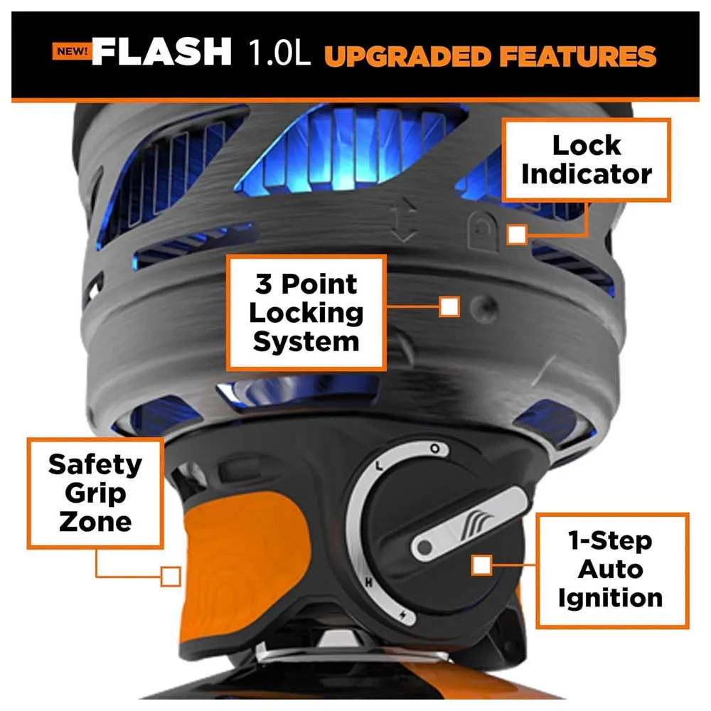 Versnel je avontuur met de nieuw verbeterde JETBOIL Flash 1L brander. Dit toonaangevende systeem levert razendsnelle kooktijden, door water te verwarmen in een razendsnelle 120 seconden. Het alles-in-één ontwerp beschikt over een eenvoudige draai-en-klik ontsteking, een thermochromatische warmte-indicator en een geïsoleerde FluxRing beker die de inhoud warm houdt. Zeer efficiënt en compact, past alles netjes in de beker, inclusief de onderkant die tevens als kom dient, waardoor het de ultieme ruimtebespaarder is voor backpacken en kamperen