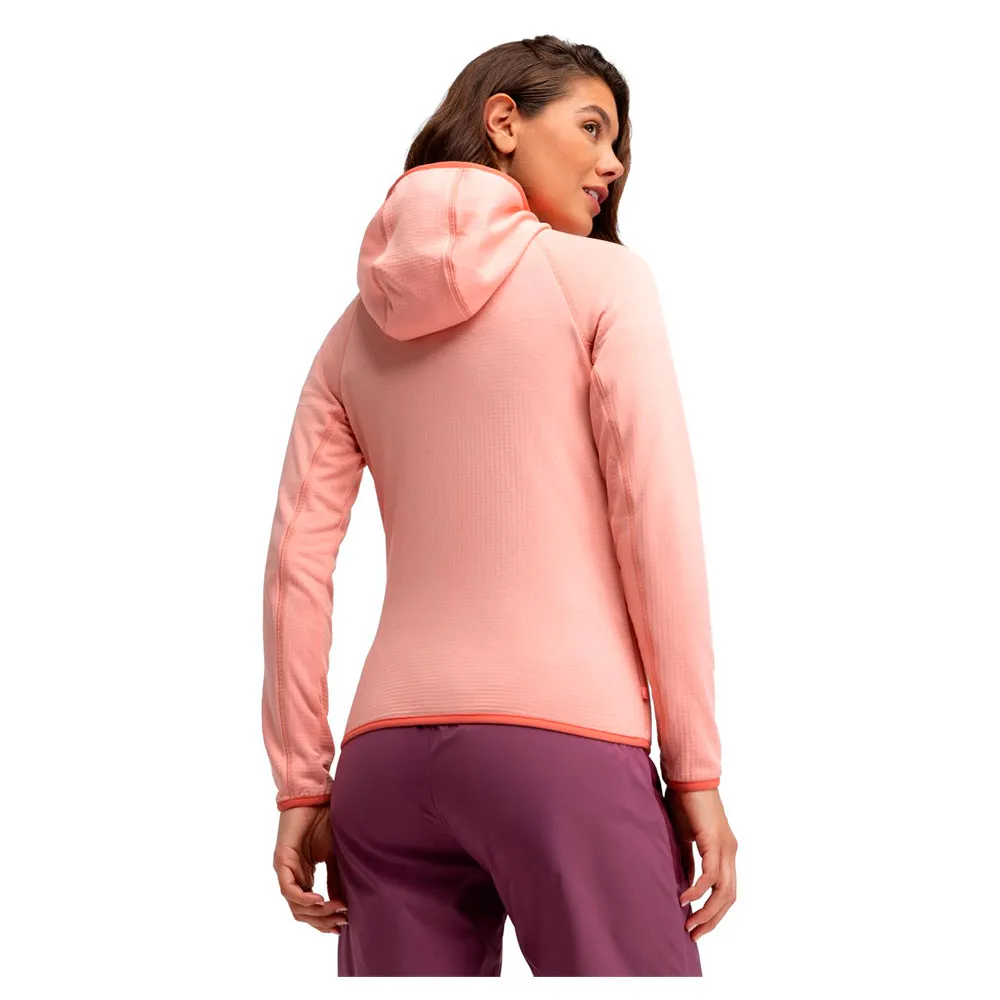 Lichtgewicht fleecejack met capuchon voor dames, geschikt voor wandelen.