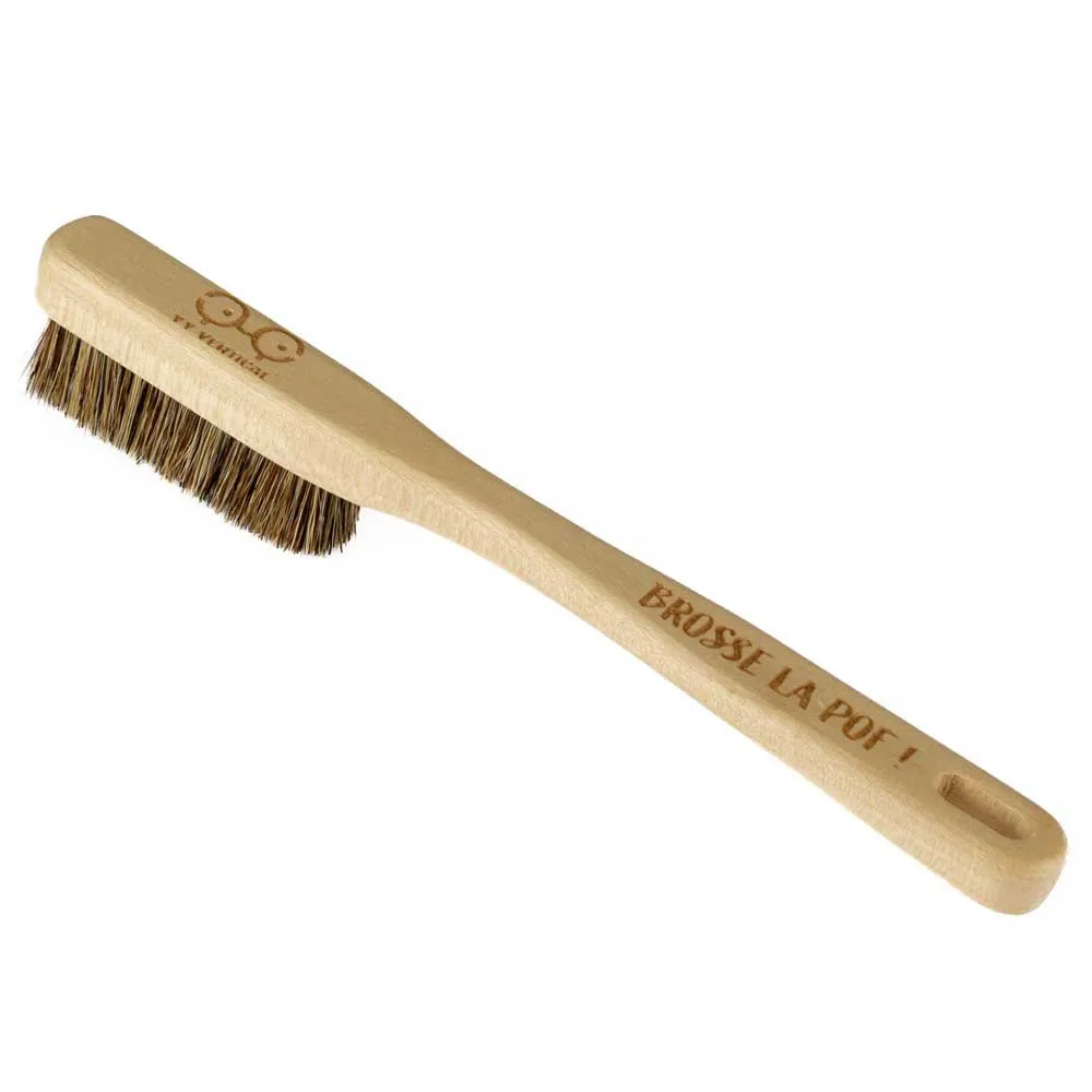 In een eco-design aanpak heeft YY Vertical de upcycled klim borstel gemaakt van reststukken van VerticalBoard trainingsbalken in populierenhout.