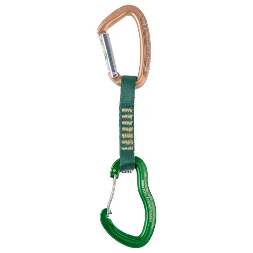 Disse to høyytelseskarabinene er koblet sammen med en robust og bred slyng som er bygget for holdbarhet og overlegen håndtering. Den ergonomiske, koniske formen er ikke bare tøff, men gir også et trygt og komfortabelt grep, noe som gjør den til et ideelt valg når du trenger å gripe tak i hurtigkoblingen mens du jobber deg gjennom en vanskelig sekvens på prosjektet ditt. Slyngens bredde og solide konstruksjon gir selvtillit og er tilgjengelig i flere lengder for å passe forskjellige klatresituasjoner, enten du trenger å redusere tauetrekket på vandrende ruter eller holde tauet rett.