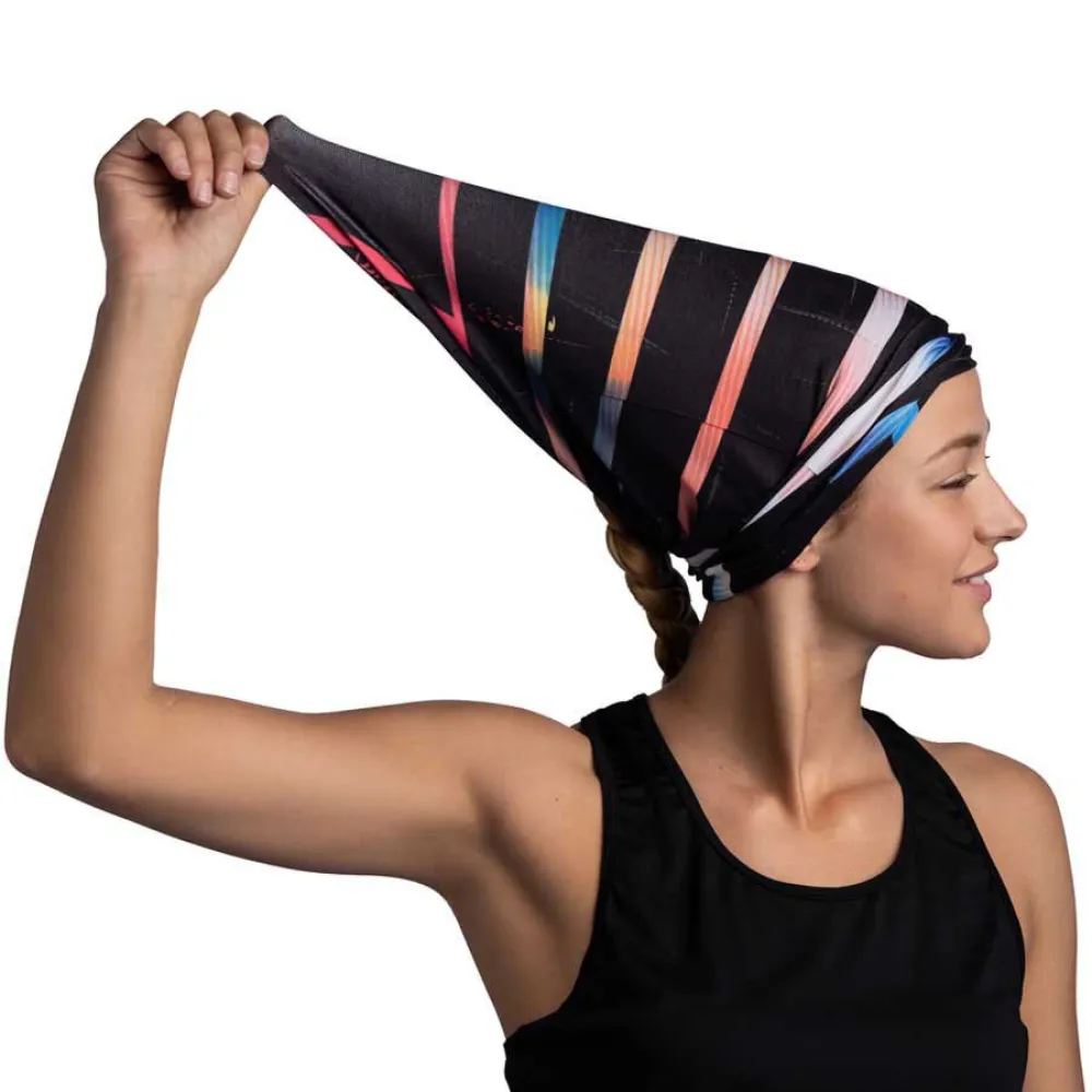 Lettvekts multifunksjonelt halstørkle laget av resirkulerte plastflasker, som gir UPF 50 solbeskyttelse og reflekterende detaljer for ekstra synlighet i svak belysning. Bli sett mens du er på farten tidlig om morgenen, om kvelden eller sent på kvelden. Den reflekterende detaljen som er lagt til i dette lette stoffets innovative HeiQ Smart Temp-teknologi betyr at du vil være kjølig og synlig mens du løper, sykler eller går tur med hunden.