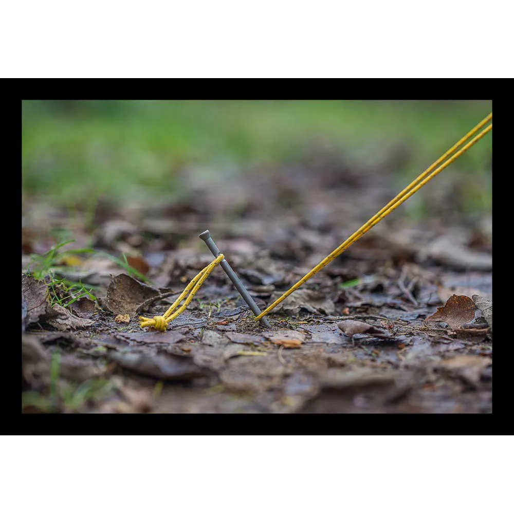 8g titan neglen er en flott kombinasjon av styrke og pakkestørrelse, noe som gjør den til et godt valg når du pakker lett. Den minimalistiske designen sikrer en svært funksjonell pinne som fungerer godt i både myk og hard jord. Spikerformen er imidlertid spesielt godt egnet for områder hvor det er begrensede muligheter for tradisjonell pegging, som steinete eller steinete områder eller områder med ekstremt hard jord. Det meget solide materialet og konstruksjonen gjør at du kan hamre spikeren på plass, og stangtauet gjør det enkelt å dra tappen opp igjen.