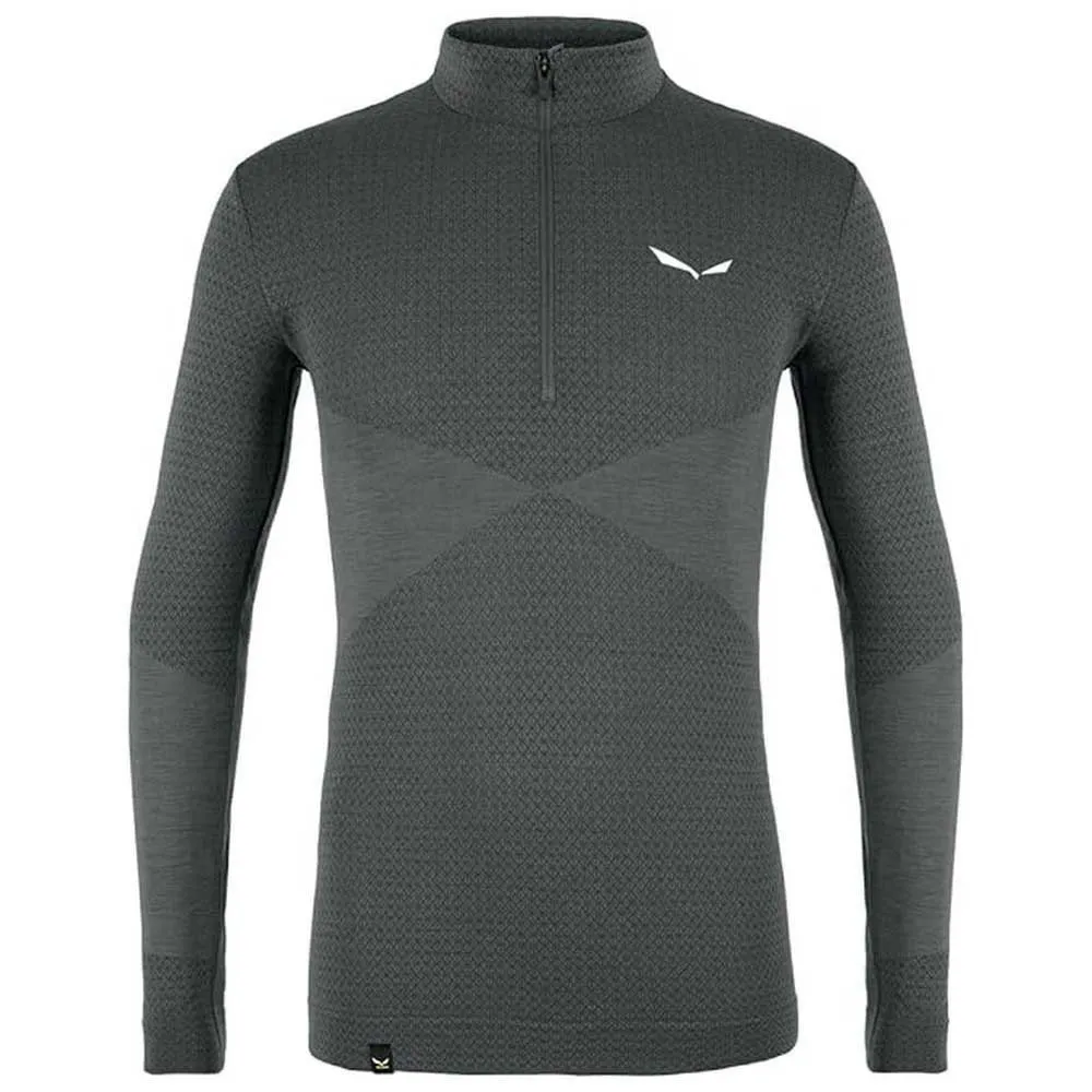 Hold deg varm, prester bedre, og restituer raskere med SALEWA Zebru Responsive underlagstrøye. Konstruert for intense alpine aktiviteter, blander den superfin merinoull for optimal fukttransporterende varme og komfort med smart Responsive-teknologi. Dette innovative stoffet resirkulerer kroppens naturlige infrarøde energi for å øke blodgjennomstrømningen og oksygeneringen. Den sømløse, atletiske passformen og halvglidelåsdesignet gir gnagsårfri komfort og enkel temperaturregulering, noe som gjør den til ditt foretrukne valg for flerdagers fjellturer under krevende forhold