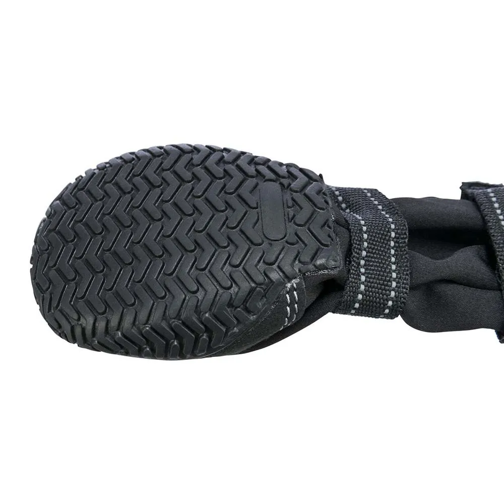 Disse høye hundeskoene gir en sikker og størrelsesriktig passform, selv med lange klør. Den robuste og godt utførte designen gir utmerket potebeskyttelse for hunder med skadde poter, noe som gjør dem ideelle for turer og fjellvandring. Et godt valg av slitesterke hundesko for store raser som trenger støtte for høye ankler. Vær oppmerksom på at materialet ikke er helt vanntett.