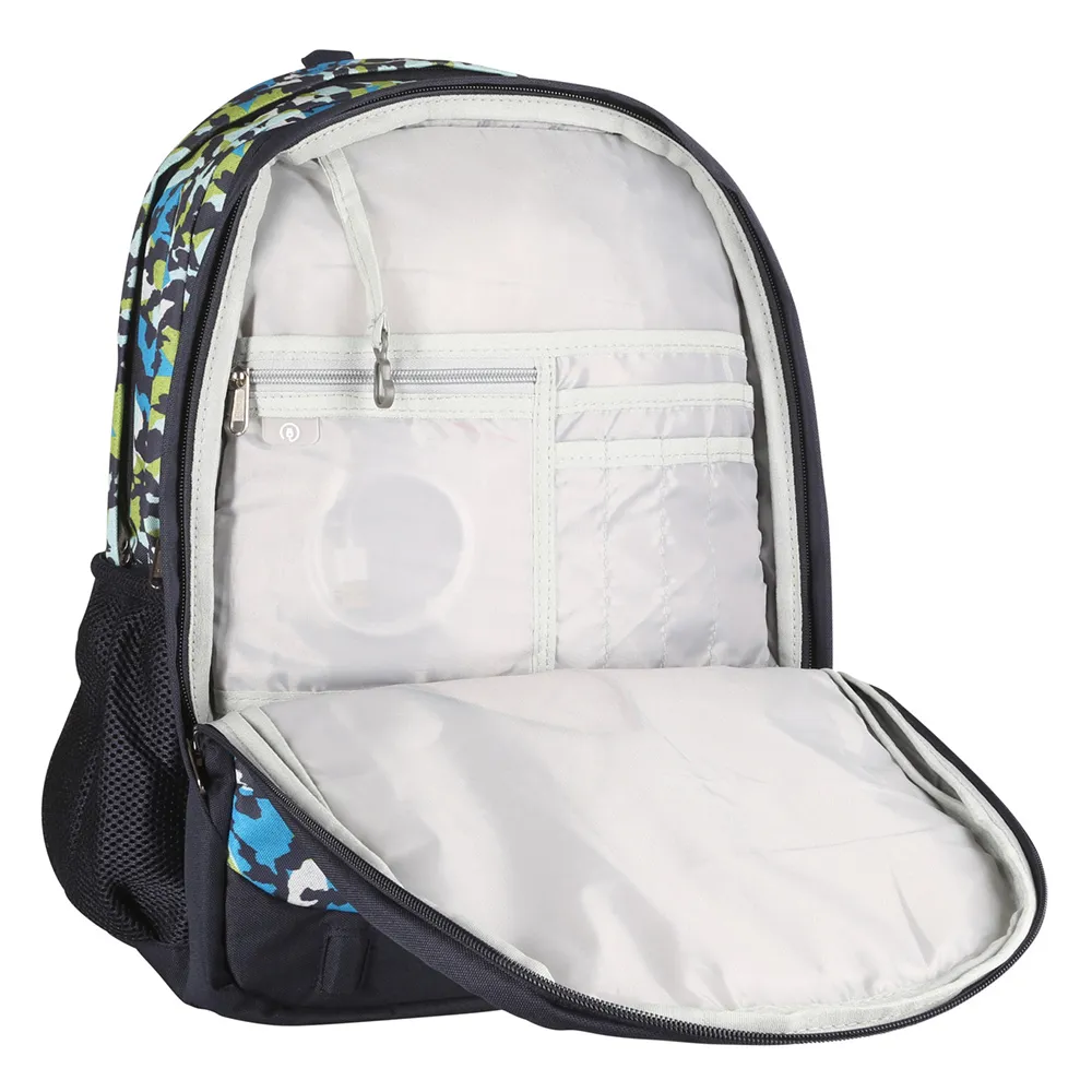 Posiada trzy pojemne komory i kilka praktycznych kieszeni, w tym przednią kieszeń zapinaną na zamek, boczną kieszeń z siatki i wewnętrzny organizer na przybory szkolne.