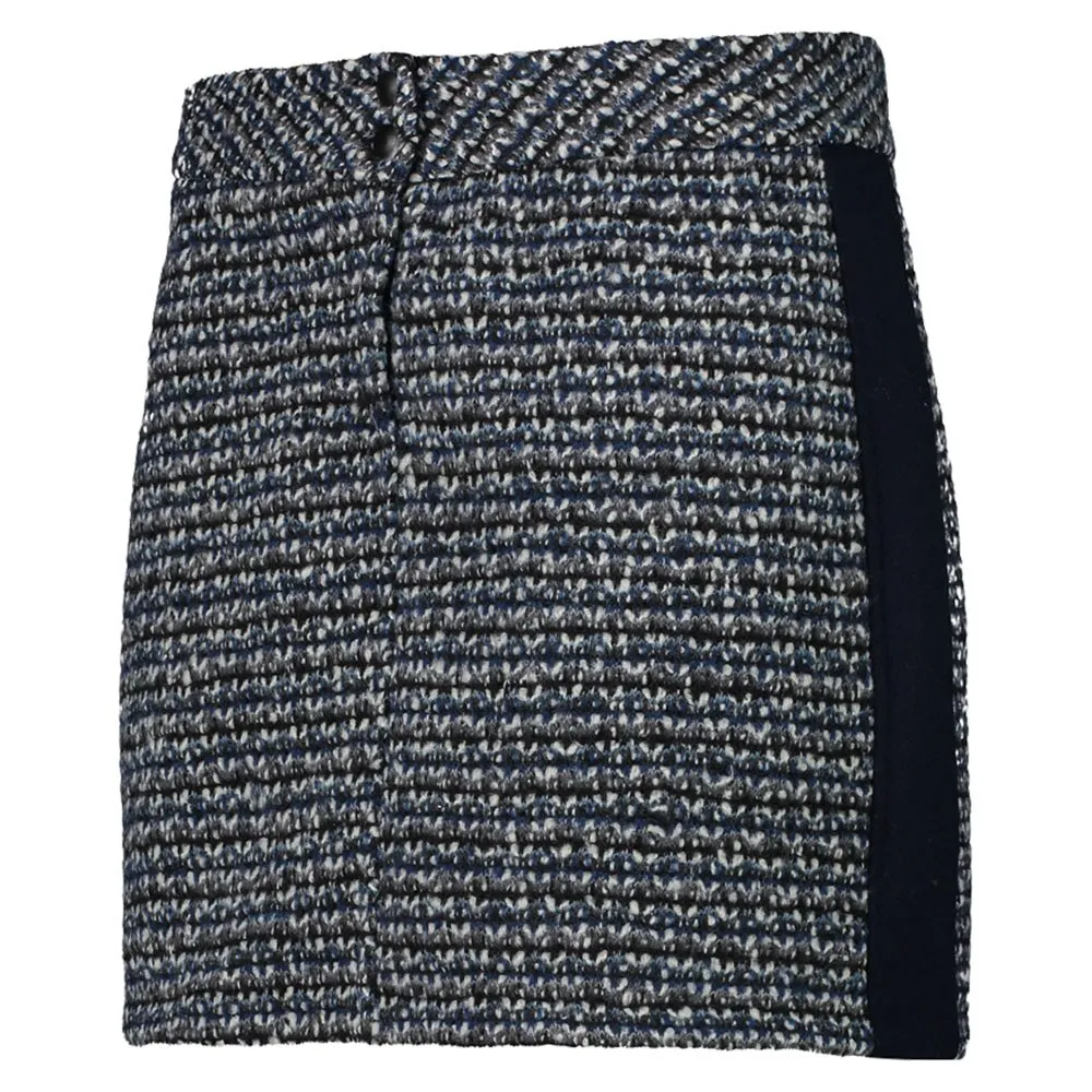 Spódnica z żakardowym wzorem wykonana z pochodzącej z recyklingu tkaniny wooltech, wełny z domieszką innych włókien syntetycznych, która gwarantuje wysoką izolację i oddychalność, zachowując tradycyjny wygląd.