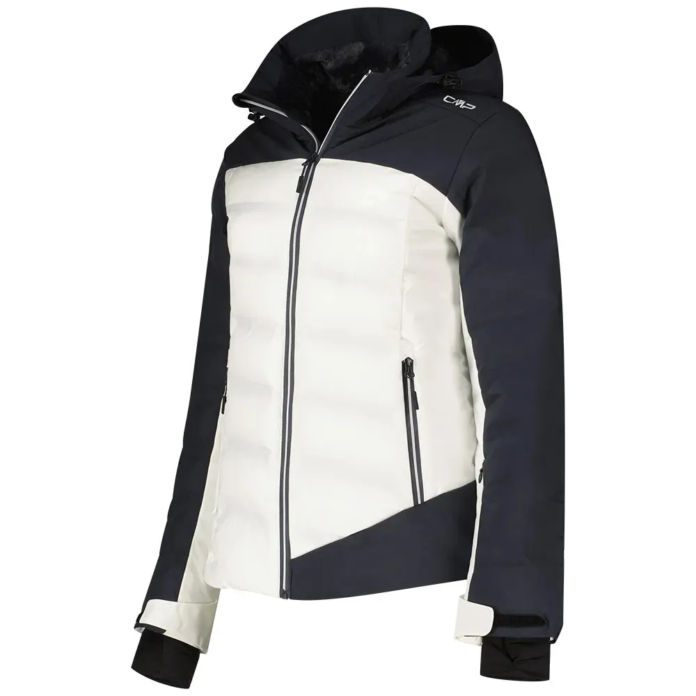 Kurtka narciarska z mechanicznym rozciąganiem z odpinanym kapturem ocieplonym Feel Warm Flock, specjalnym włóknem syntetycznym, które utrzymuje ciepło ciała nawet w wilgotnych warunkach.