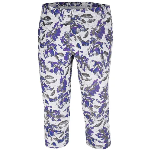 Floral-patterned stretch-fabric sporty Capri pants with an adjustable waistband.