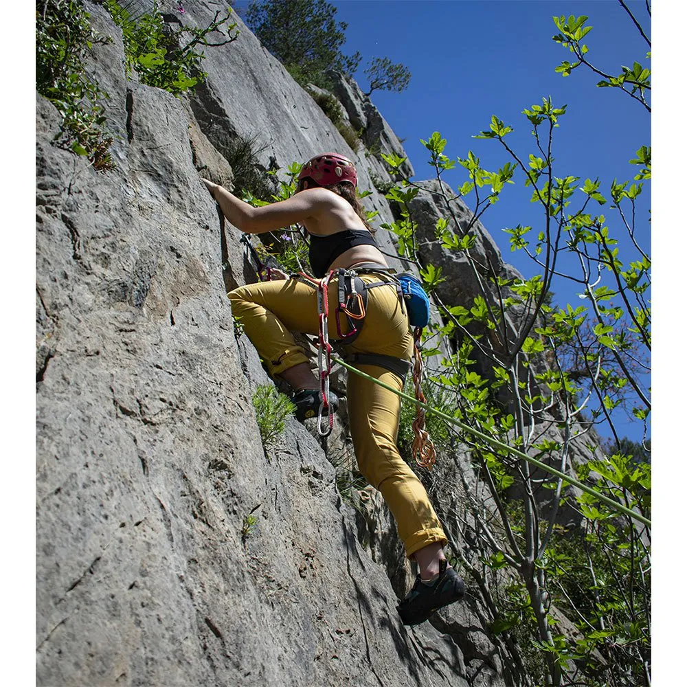 Saona to para kolorowych dżinsów przeznaczonych do wspinaczki i boulderingu, a także do wędrówek, trekkingu lub innych aktywności na świeżym powietrzu, ale ze względu na swój swobodny wygląd i wygodę jest to również para spodni, które można nosić przez cały rok w podróży . lub do innych codziennych zastosowań, takich jak kupowanie lub pójście na drinka z przyjaciółmi.