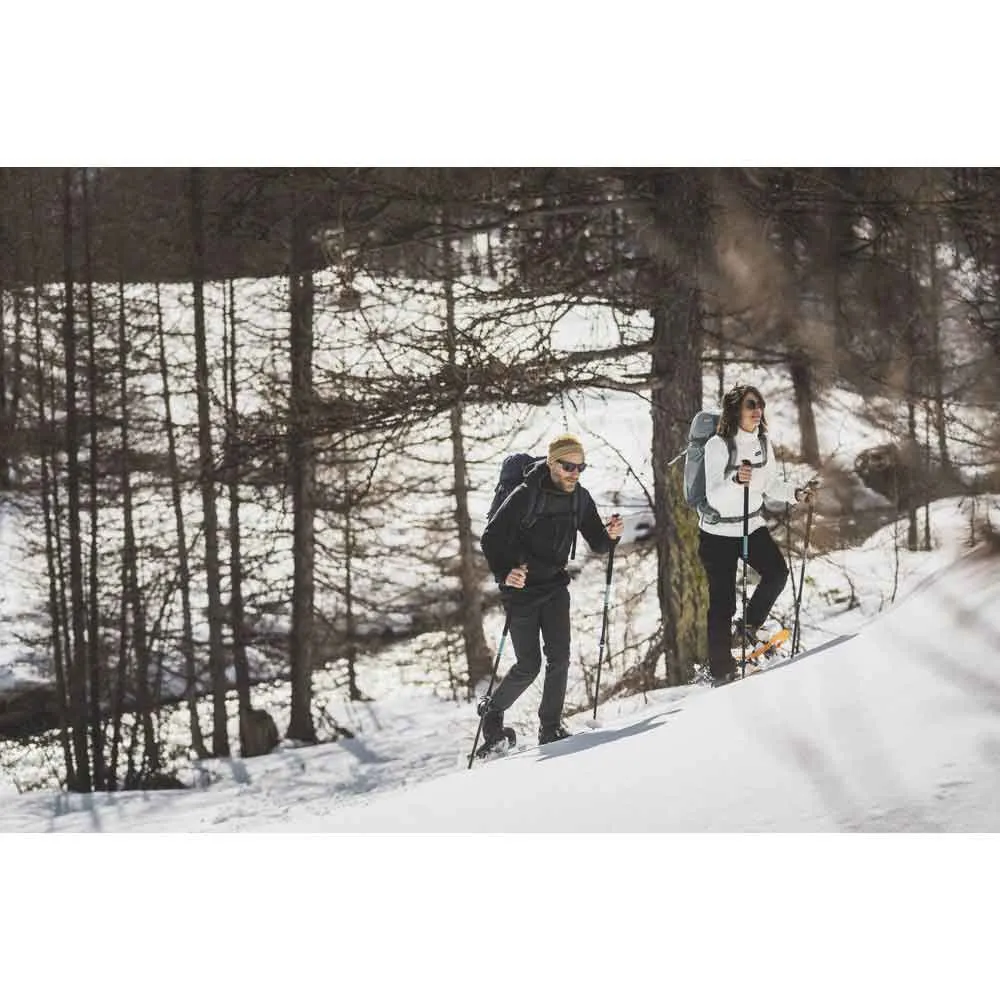 Ten składany kij trekkingowy został zaprojektowany do użytku zimą, wyposażony jest we wzmocniony kosz i długą rękojeść z pianki EVA, która pozwala dopasować ułożenie dłoni do rodzaju aktywności i terenu.