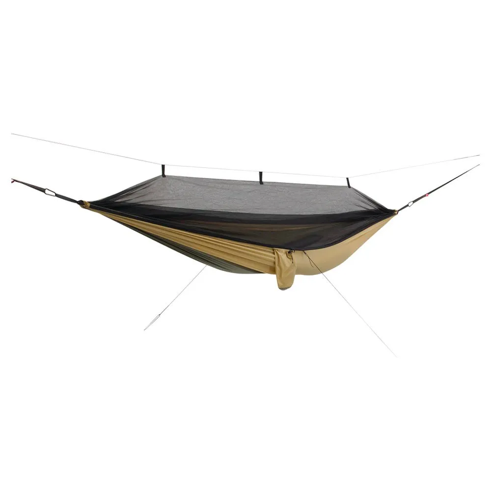 - Materiał: Hamak: 210T nylon z recyklingu, Siatka: Poliester z recyklingu, Plandeka: 210T poliester ripstop