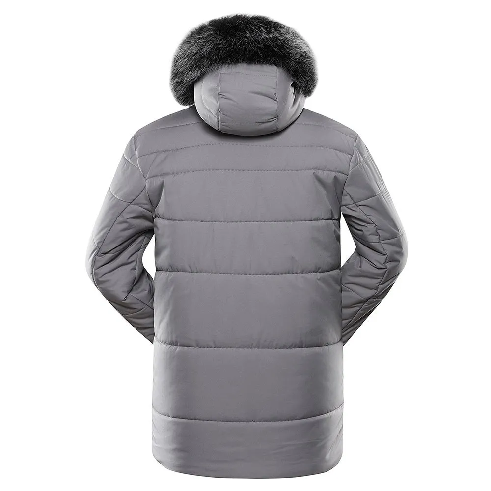 A jaqueta de inverno Loder para homens da marca tcheca Alpine Pro é feita de material PTX moderno, que possui uma membrana PTX não porosa laminada no verso, que garante alta impermeabilidade e excelente permeabilidade ao vapor, essencial para afastar o suor do corpo.