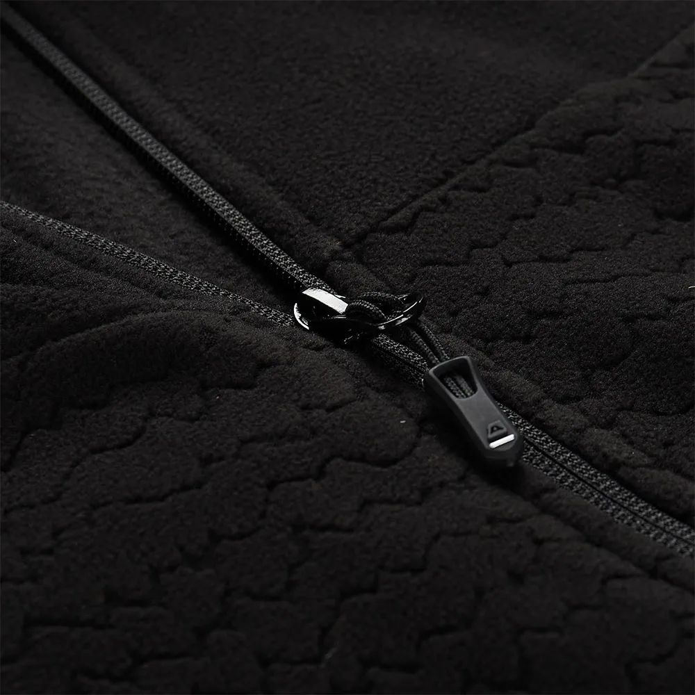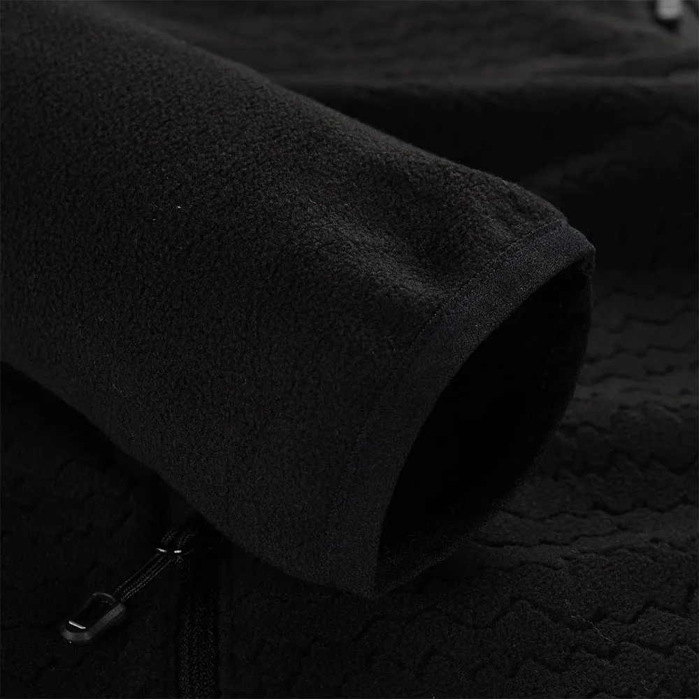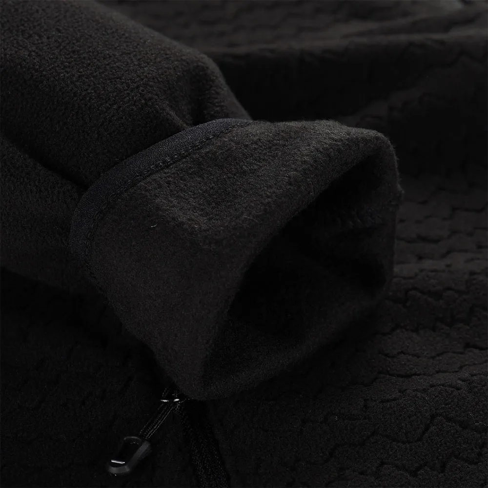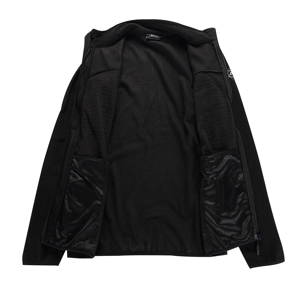 microfleece, relevo, corte regular, gola estendida, protetor de queixo, mangas com acabamento elástico, total de 2 bolsos, frente com zíper, estampa na frente, patch na manga, puxadores mais longos para fácil manuseio.