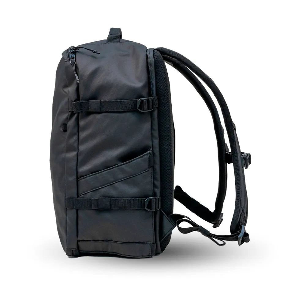 Por fim, as correias de compressão laterais permitem ajustar o volume da mochila, tornando-a compacta e fácil de manusear em qualquer situação.