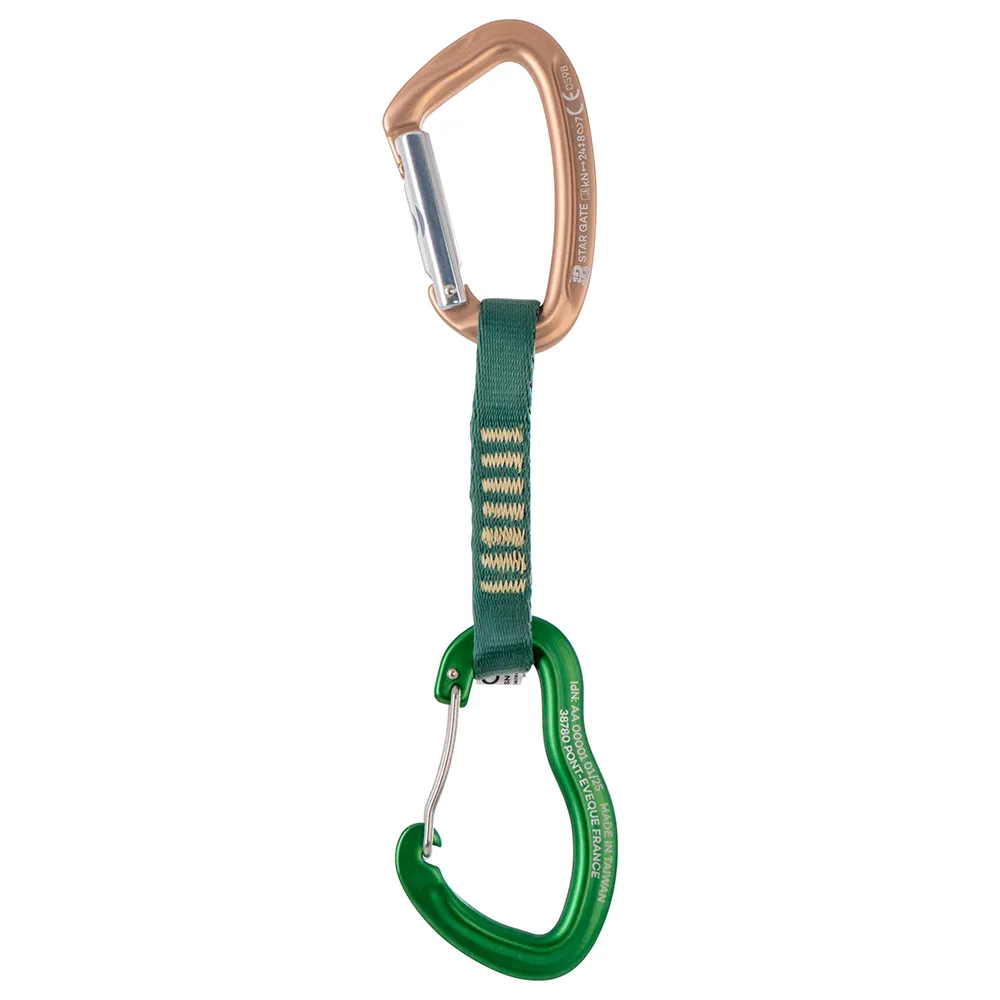 Conectando esses dois mosquetões de alto desempenho está uma fita robusta e larga, construída para durabilidade e manuseio superior. Seu formato ergonômico e cônico não é apenas resistente, mas também oferece uma pegada confiante e confortável, tornando-o uma escolha ideal quando você precisa agarrar a costura enquanto trabalha em uma sequência difícil em seu projeto. A largura e a construção robusta da fita inspiram confiança e estão disponíveis em vários comprimentos para atender a diferentes situações de escalada, seja para reduzir o atrito da corda em vias sinuosas ou para manter a corda correndo reta.