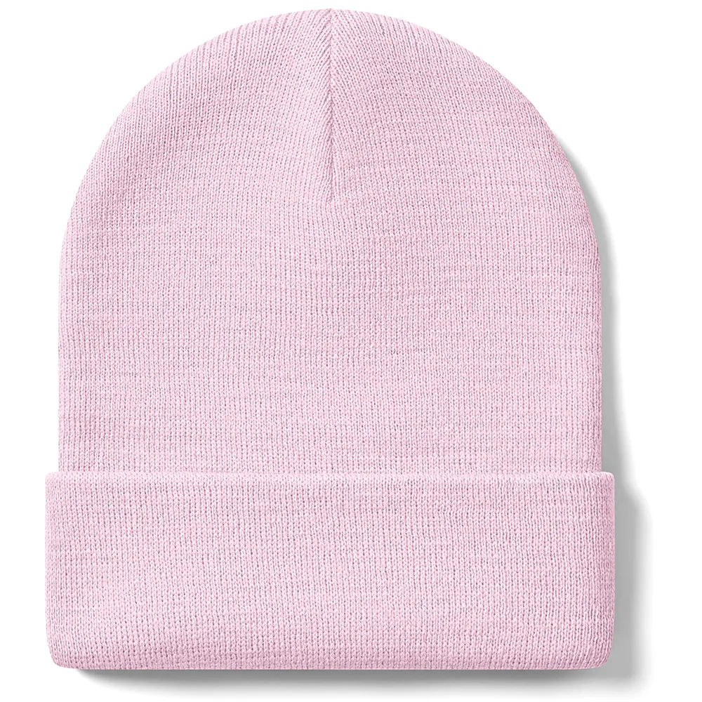 Uma touca de corte clássico com borda dobrada e pequena etiqueta com logo costurada.