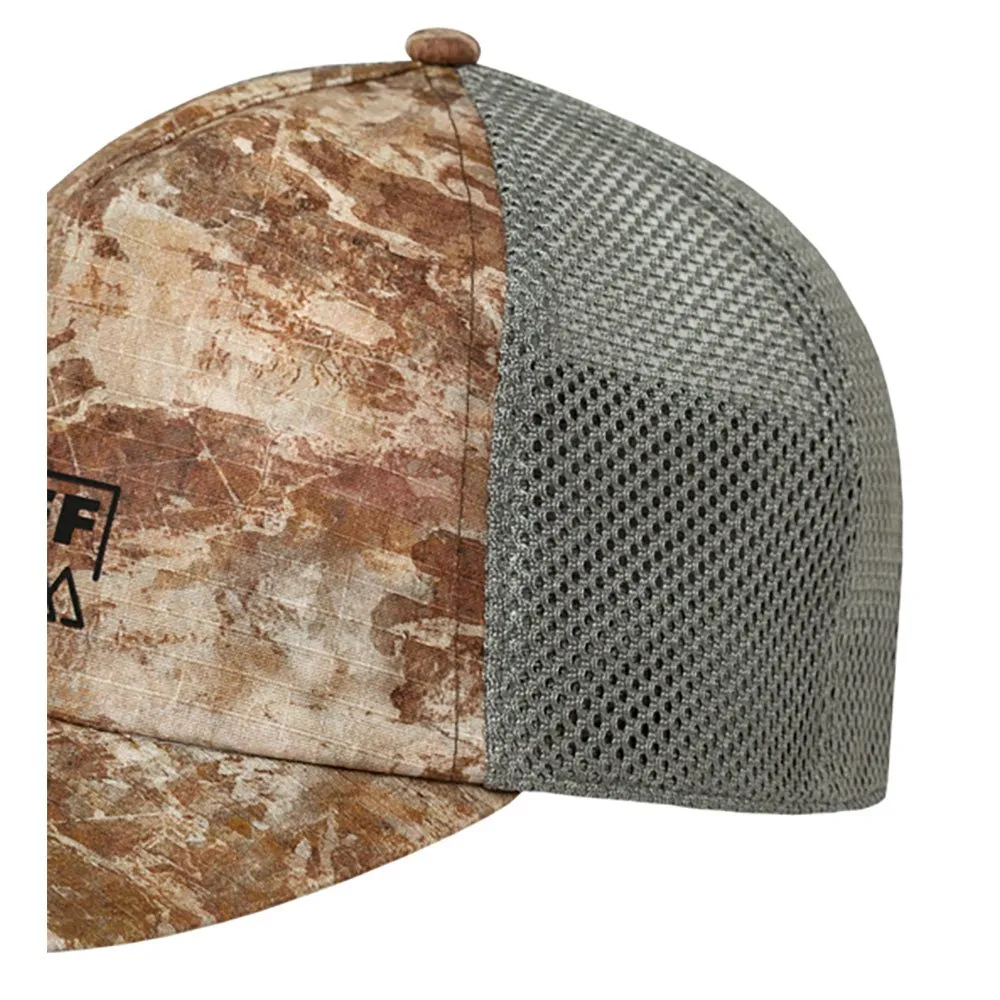 A Buff tem designs incríveis, tanto em termos de gráficos quanto de acabamento, mas este boné pode não agradar a todos. Apesar do seu corte alto, estilo trucker, ele é semiestruturado e sua viseira curta e muito flexível facilita o enrolamento. As cores são incríveis, quase como as da foto, e a estampa é impecável, assim como o acabamento geral.
