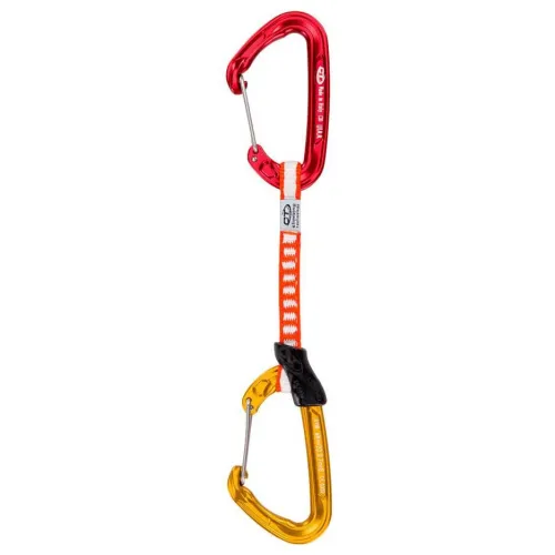 Ideal para a rota multi-passo e escalada desportiva multi-passo, onde o peso faz a diferença. Equipado com mosquetões forjados a quente de tamanho extremamente compacto, com porta de arame para facilitar a inserção da corda. O portão de arame facilita a inserção da corda e impede que o portão oscile em caso de impacto contra a rocha. Graças ao forjamento a quente, o design leve e trabalhado, permite uma melhor aderência durante as manobras e a nova forma do nariz reduz a possibilidade de a corda e / ou a âncora serem apanhadas durante a remoção. Equipado com um sling durável e leve de 10 mm Dyneema e um novo fixador de borracha FIXIT no mosquetão inferior que evita a rotação durante o uso e protege o sling contra desgaste