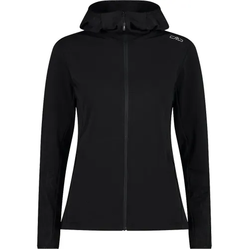 Casaco com capuz fixo em Stretch Performance, um processamento especial de fleece que o torna altamente isolante, respirável e ergonómico.