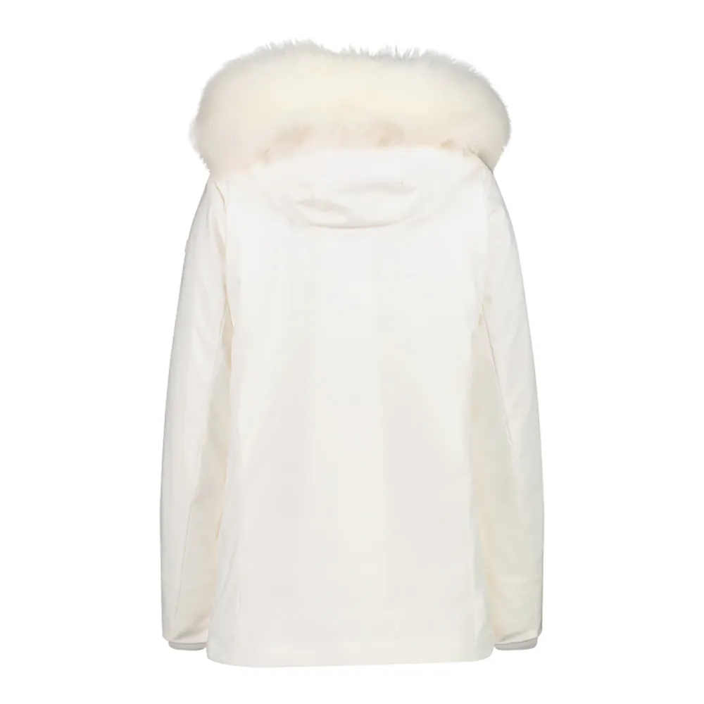 Possui um capuz com fecho de botão e acabamento em pele sintética, que adiciona calor e um toque elegante.